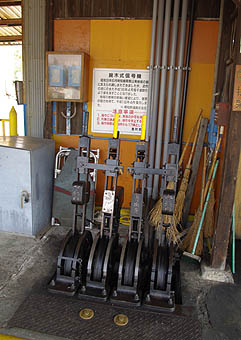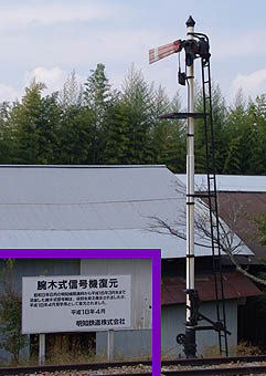 ▲役目を終えた腕木式信号機が見学用に