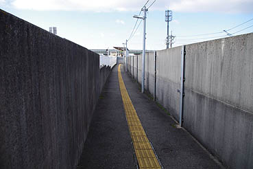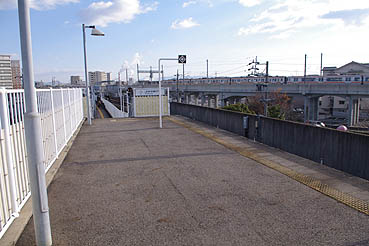 ▲階段をのぼり、高架上に上がるもそこにはホームはなく、さらにえんえんと歩かされます。(2011.12撮影)