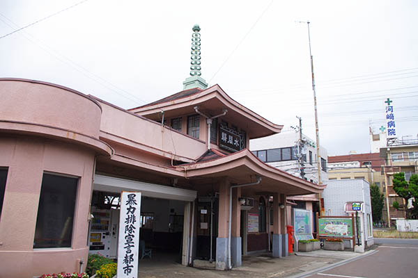 ▲大正15(1926)年1月開業。駅舎は開業時のもので水間寺への参拝駅として建てられた寺院風建築です。