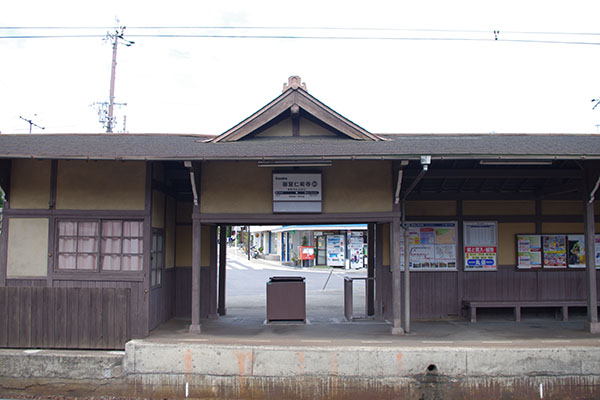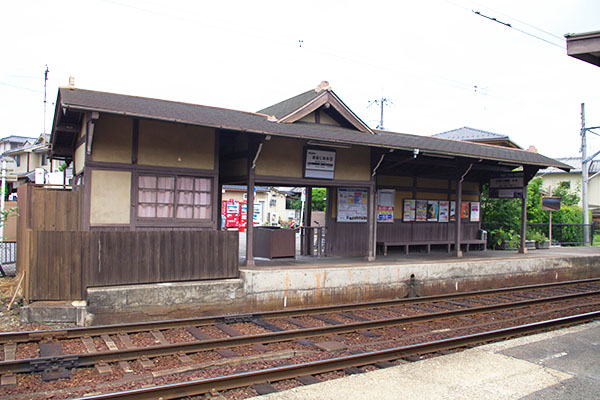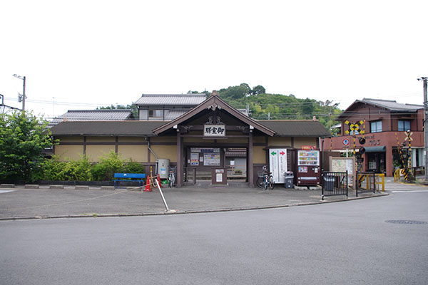 駅舎というよりはただの「門」といった感じですが、世界遺産・仁和寺への下車駅にふさわしく寺社風の外観になっています。(2011.7撮影)