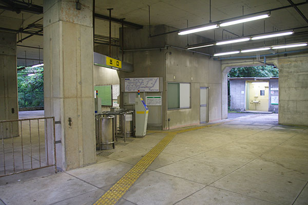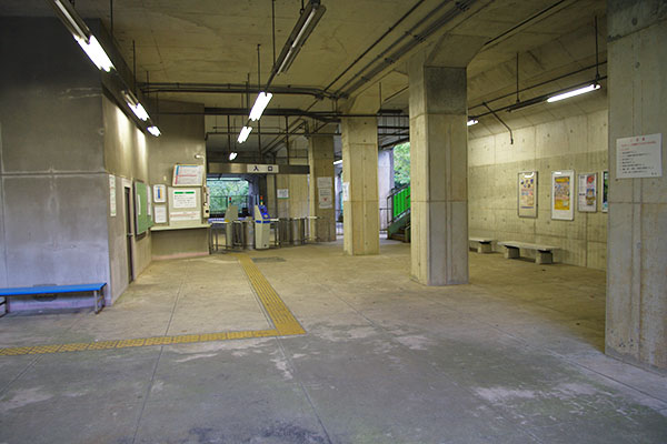 ▲駅舎内。高架下のコンクリートの寒々とした空間が広がっています。(2011.8撮影)