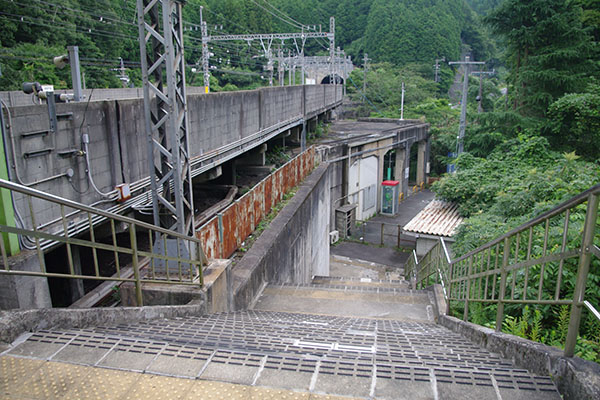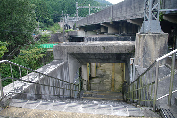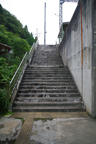 ▲1番ホームへの昇り階段。(2011.8撮影)