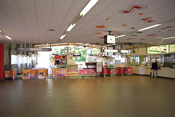 ▲生駒山上にある遊園地への玄関駅としてメルヘンチックな装飾がされていますが、宝山寺への参拝、また通勤路線でもあります。