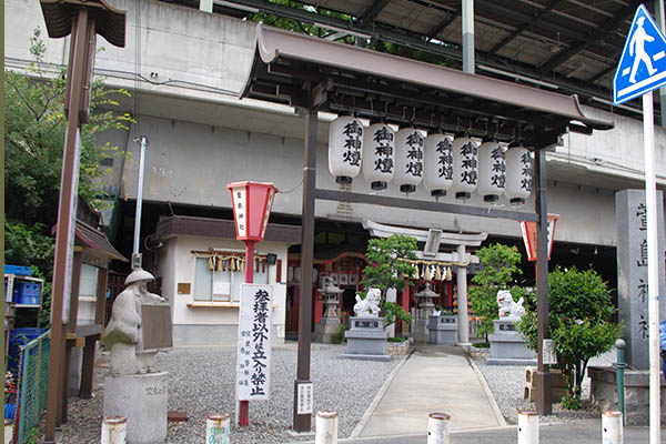 ▲高架下にある「萱島神社」。(2011.7撮影)