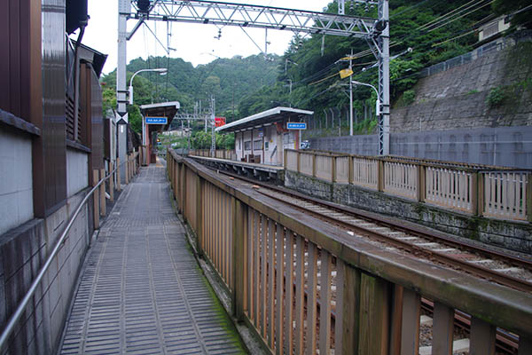 ▲ホーム遠望。駅の前後は急カーブと急勾配の連続する区間です。(2011.7撮影)