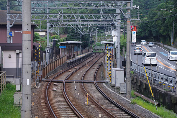▲急勾配のホーム。30パーミルもしくは33パーミル、40パーミルあるという見方もあり、ここが日本一急勾配の駅とだいう人もいます。