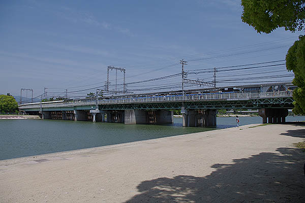 ▲ホームから見た武庫川。(2011.5撮影)