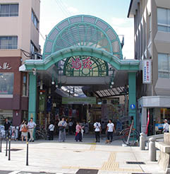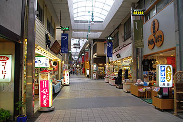 左:駅前にある商店街入口。商店街を抜けると「道後温泉本館」に着きます。