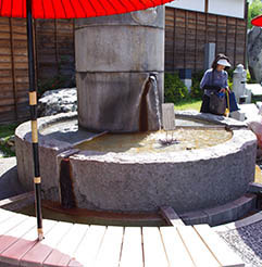 右:からくり時計のすぐ隣にある足湯。(2011.7、2012.6撮影)