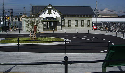 ▲現駅舎。駅前も整備され、ループバスが乗り入れるようになりました。