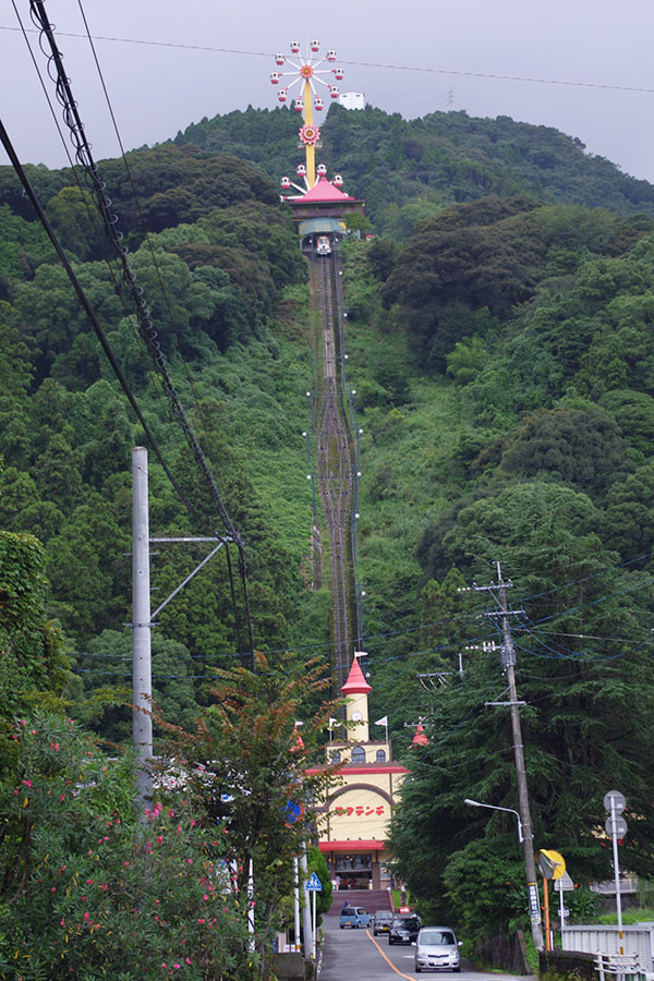 ▲「ラクテンチケーブル」は別府市内にある遊園地「ラクテンチ」への入園者を運ぶためのケーブルカーです。