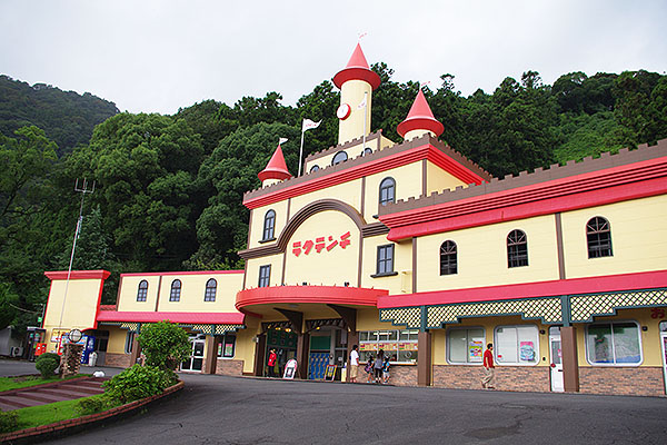 遊園地の入口駅だけにメルヘンチックな外観です。